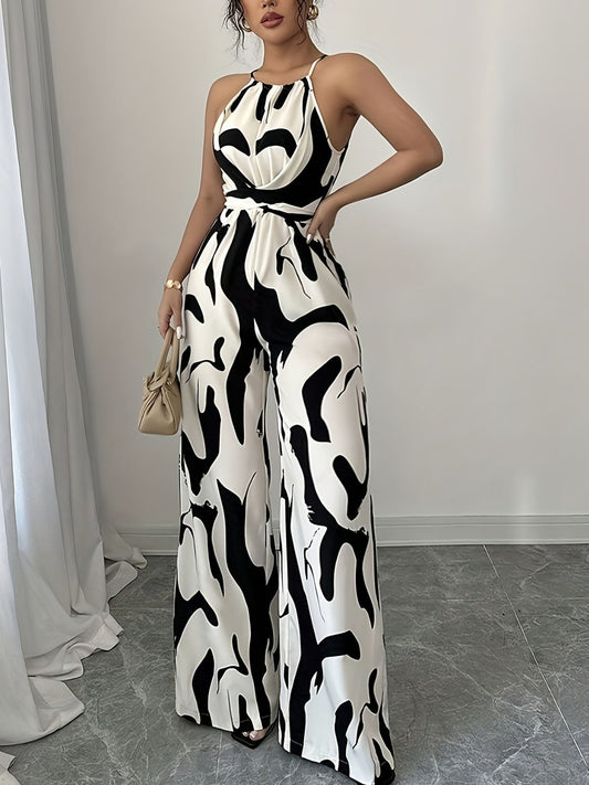 Abstract Print Sleeveless Wide Leg Jumpsuit