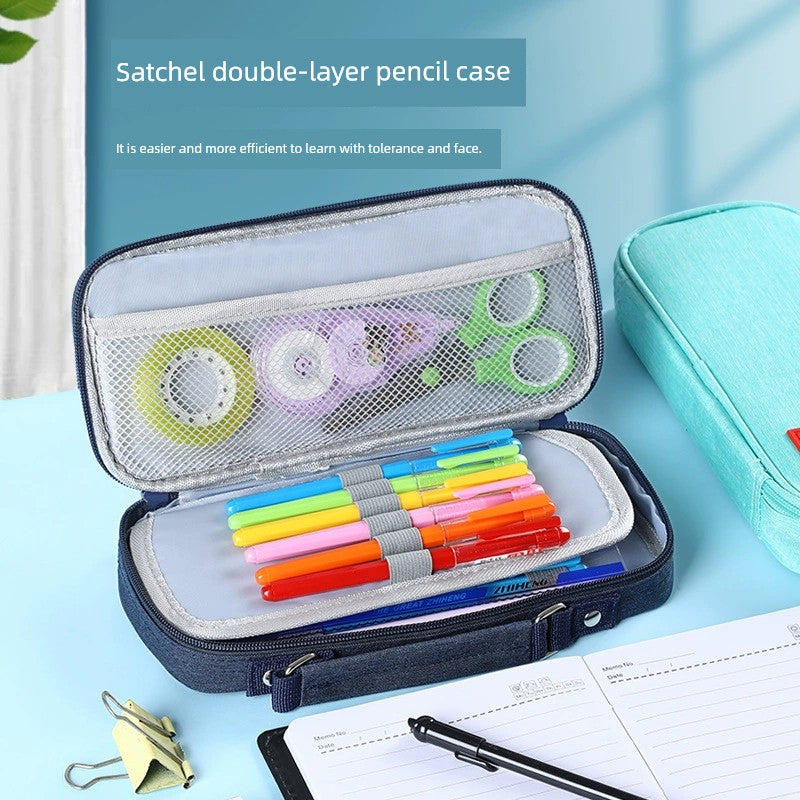 Creative Large Capacity Stationery Bag Portable Exam Stationery Box Primary School Students Multifunctional Pencil Case/New Arrival Pencil Bag Girls Handheld Double Deck Can Be Stored Waterproof Learning like Layering